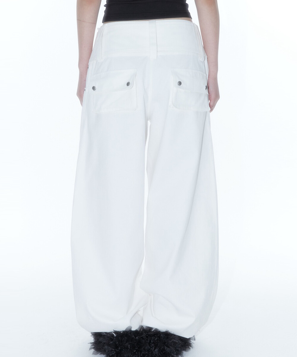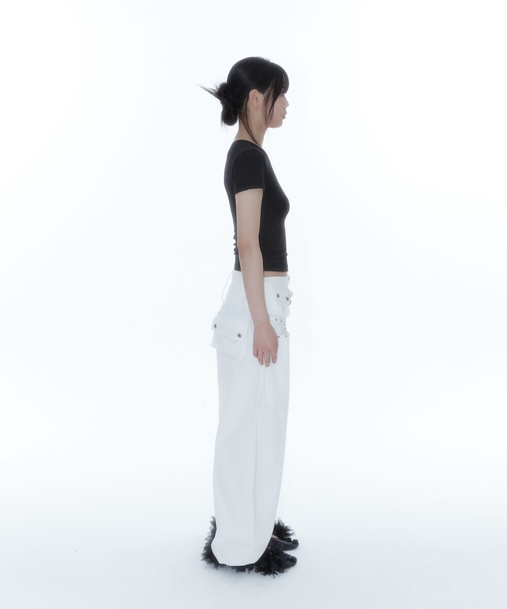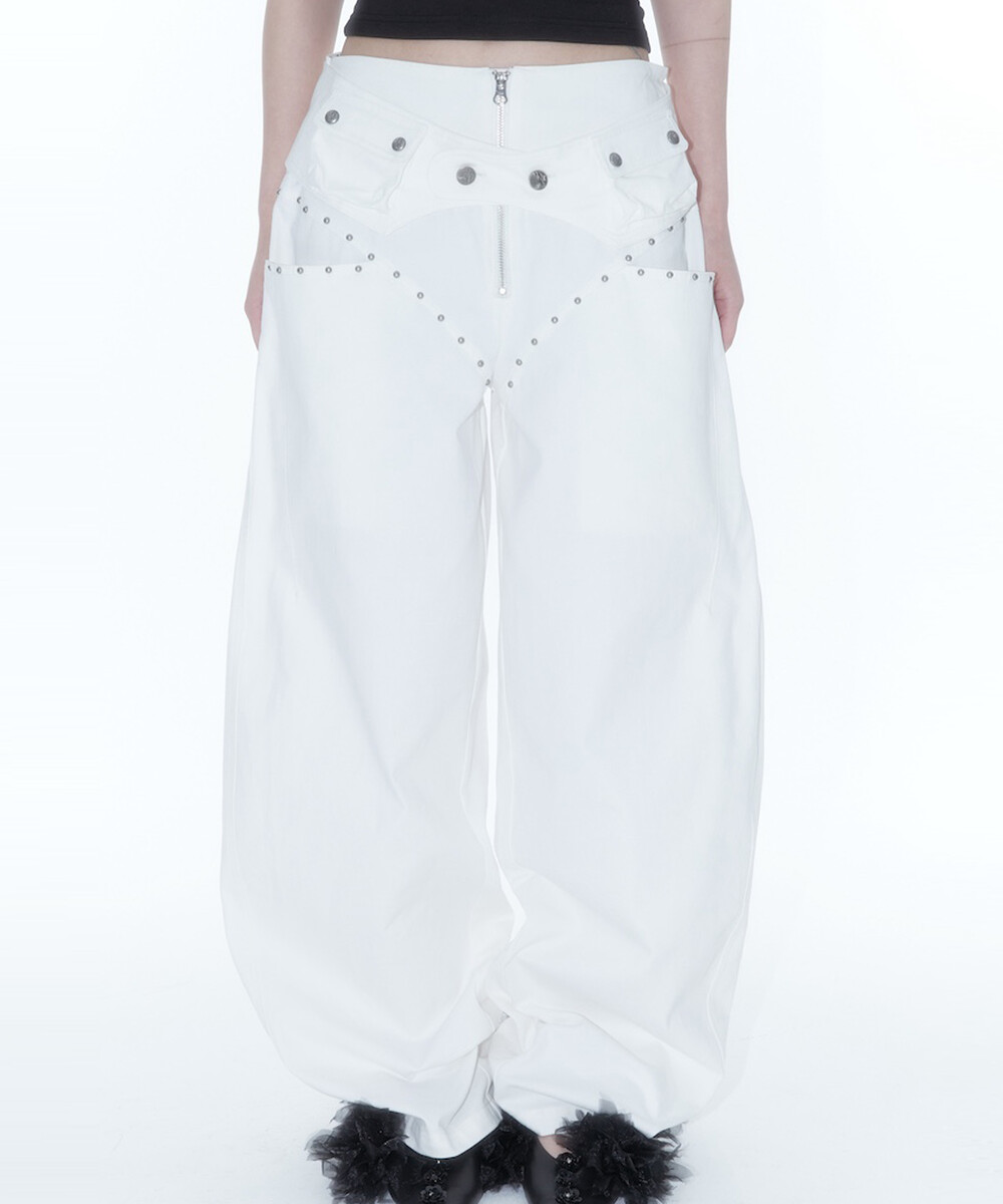 Belt Rivet Oval Pants Off White