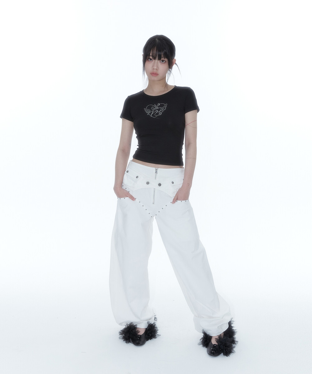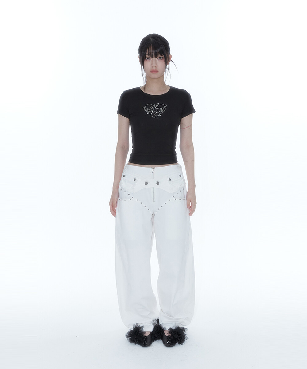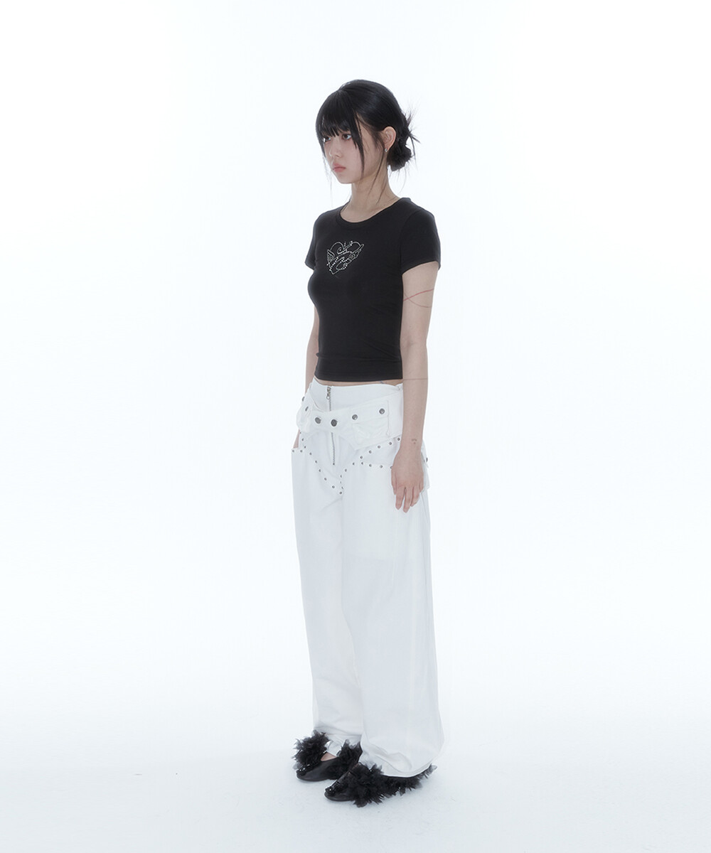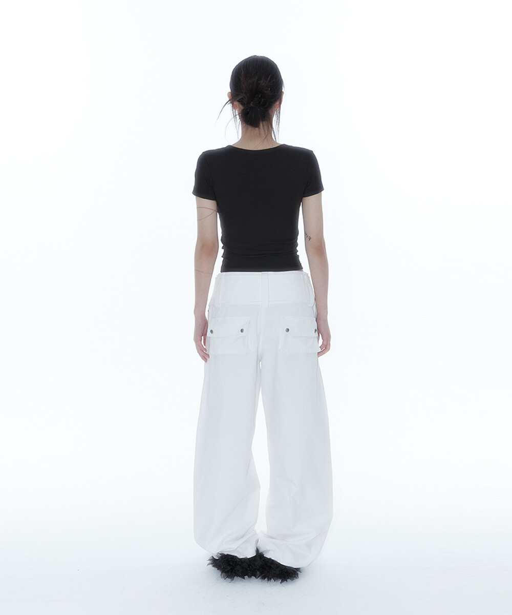 Belt Rivet Oval Pants Off White