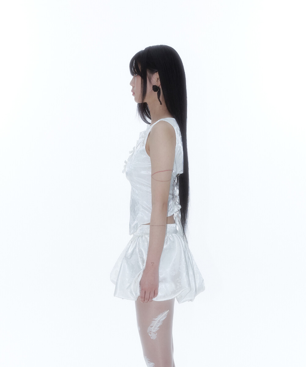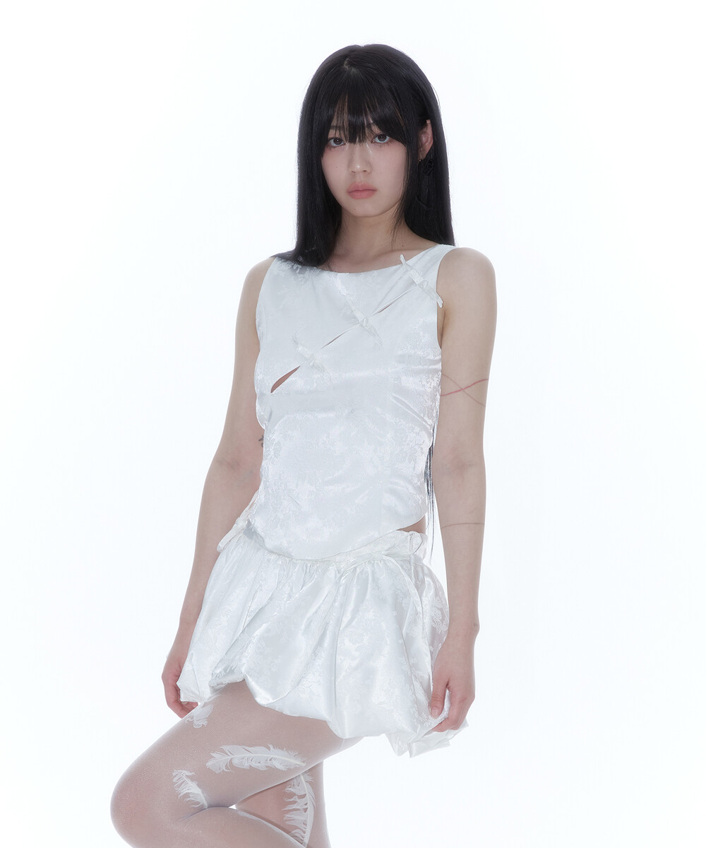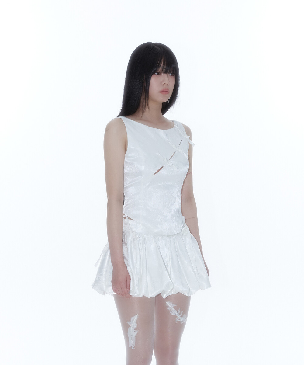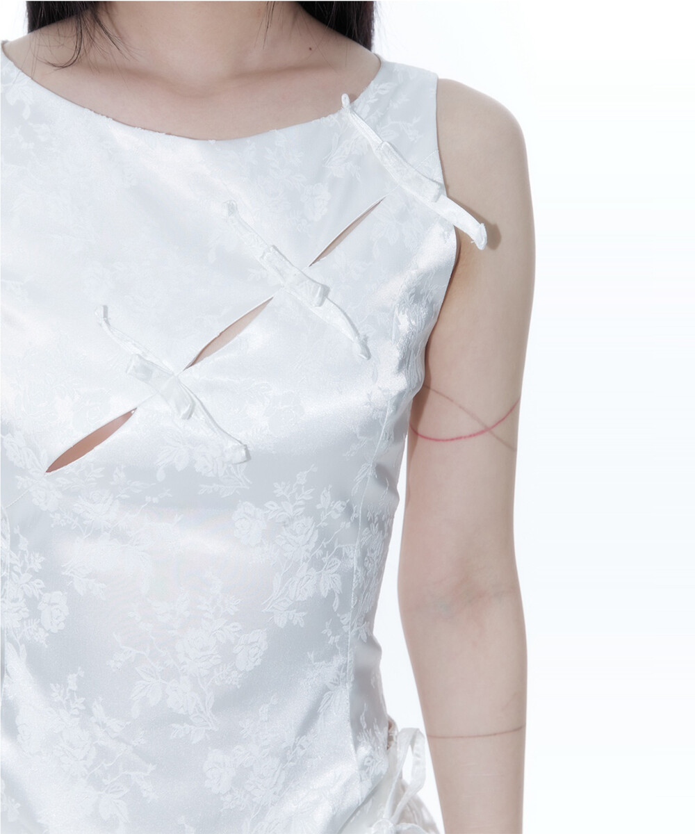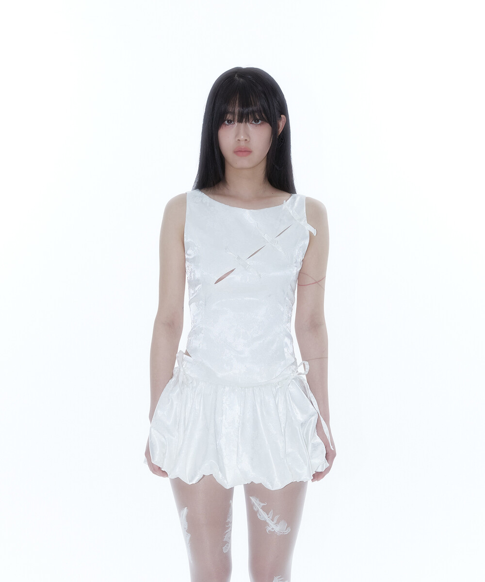 Ribbon Paneled Sleeveless White