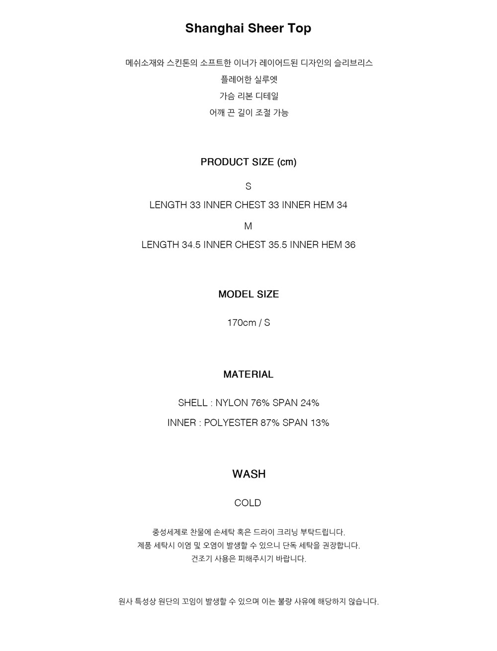 - 제품 제작 과정에서 발생할 수 있는 봉제 자국, 초크자국, 프린트의 작은 이염, 미세 잡사 등은 하자의 사유에 해당되지 않습니다.