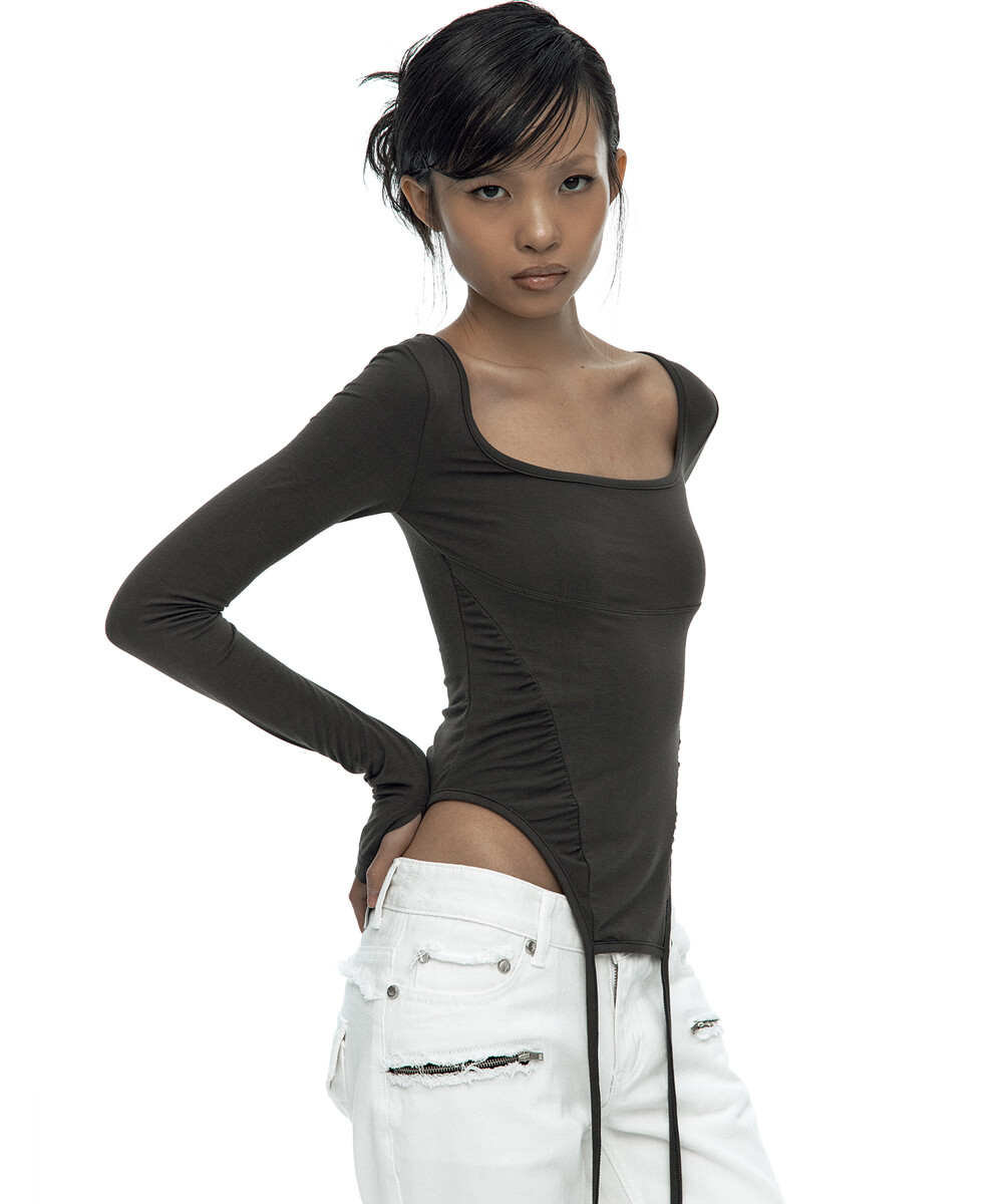 Slinky Shirring Bodysuit Khaki
