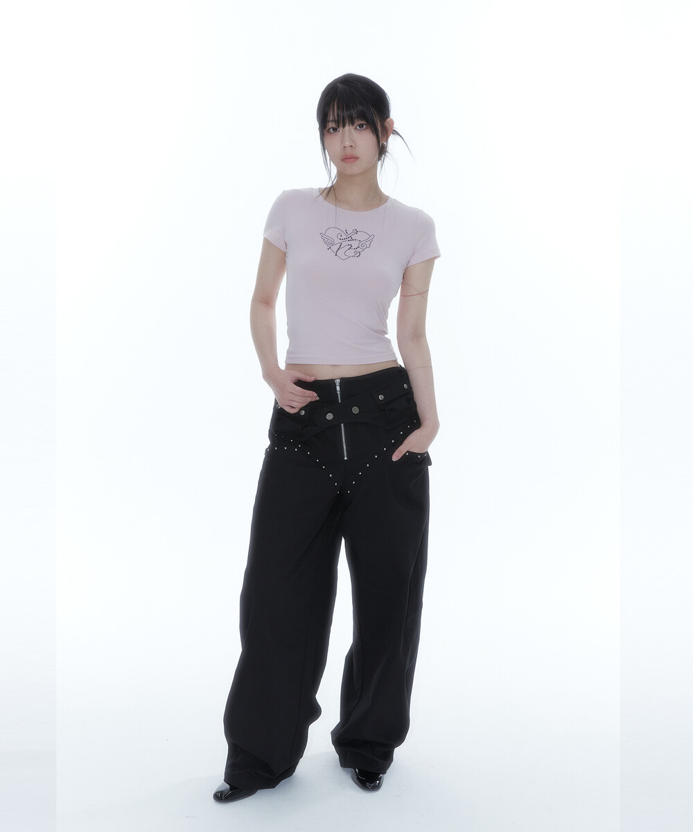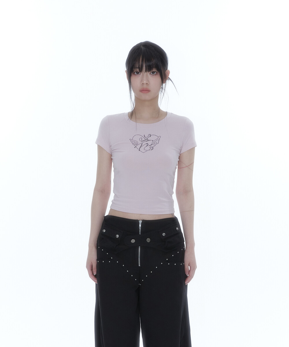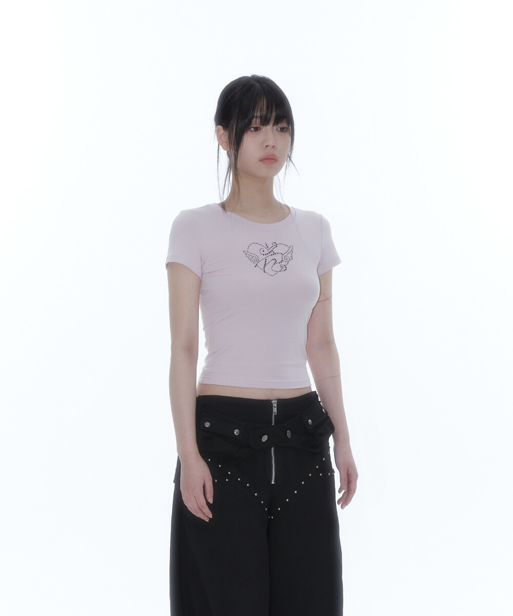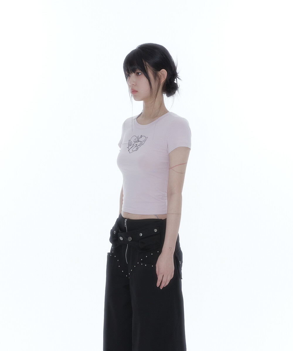Flower Heart Baby Tee Pink