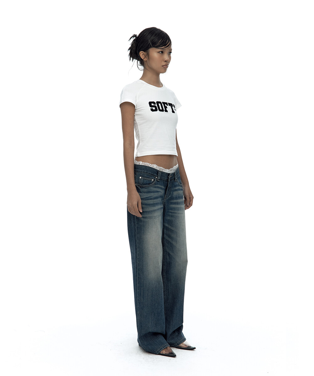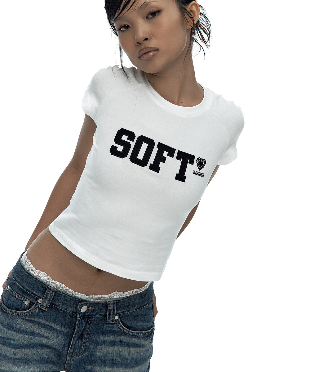 - SOFT 아플리케 자수 디테일이 들어간 반팔 티셔츠