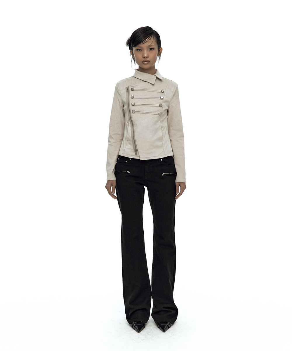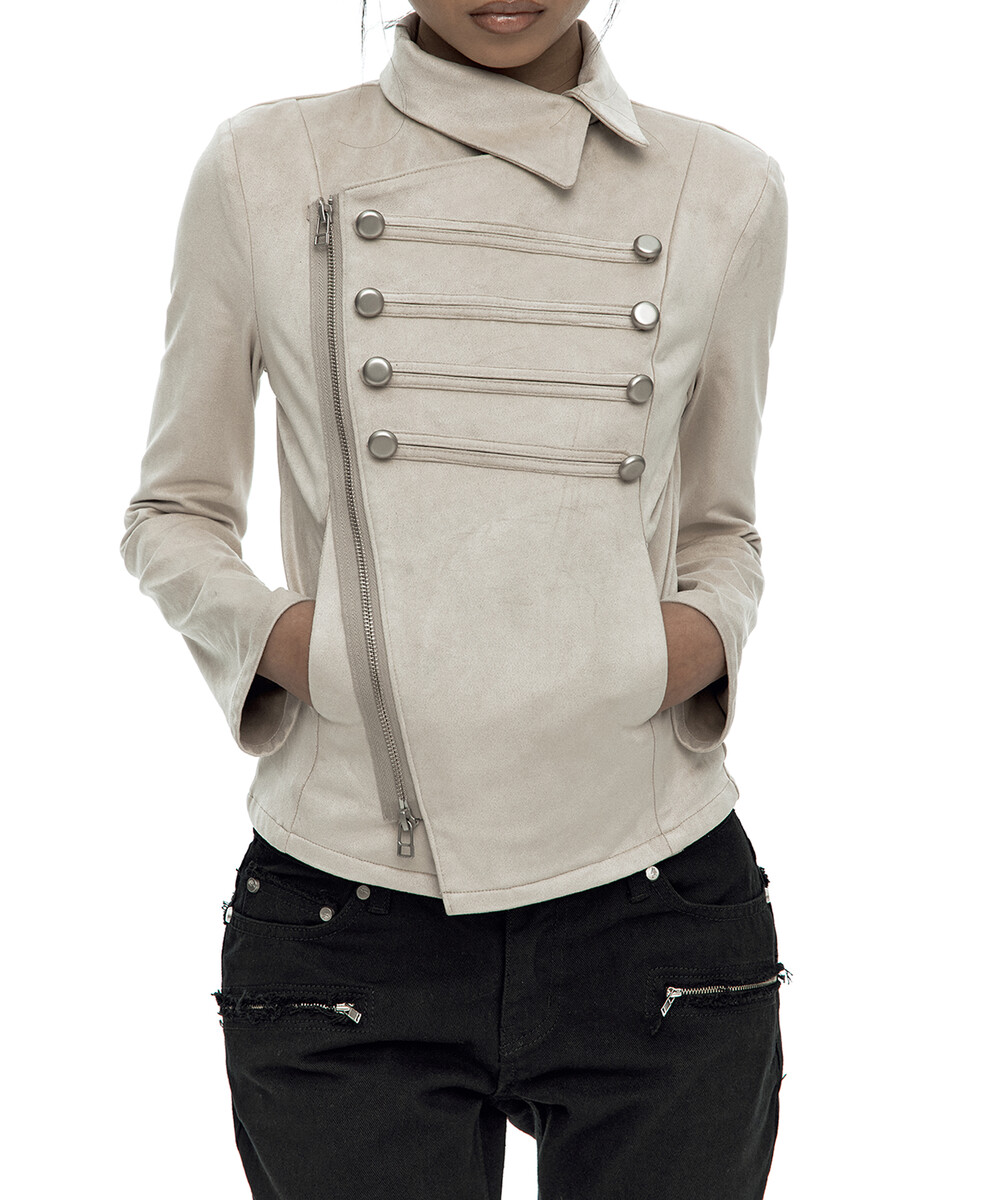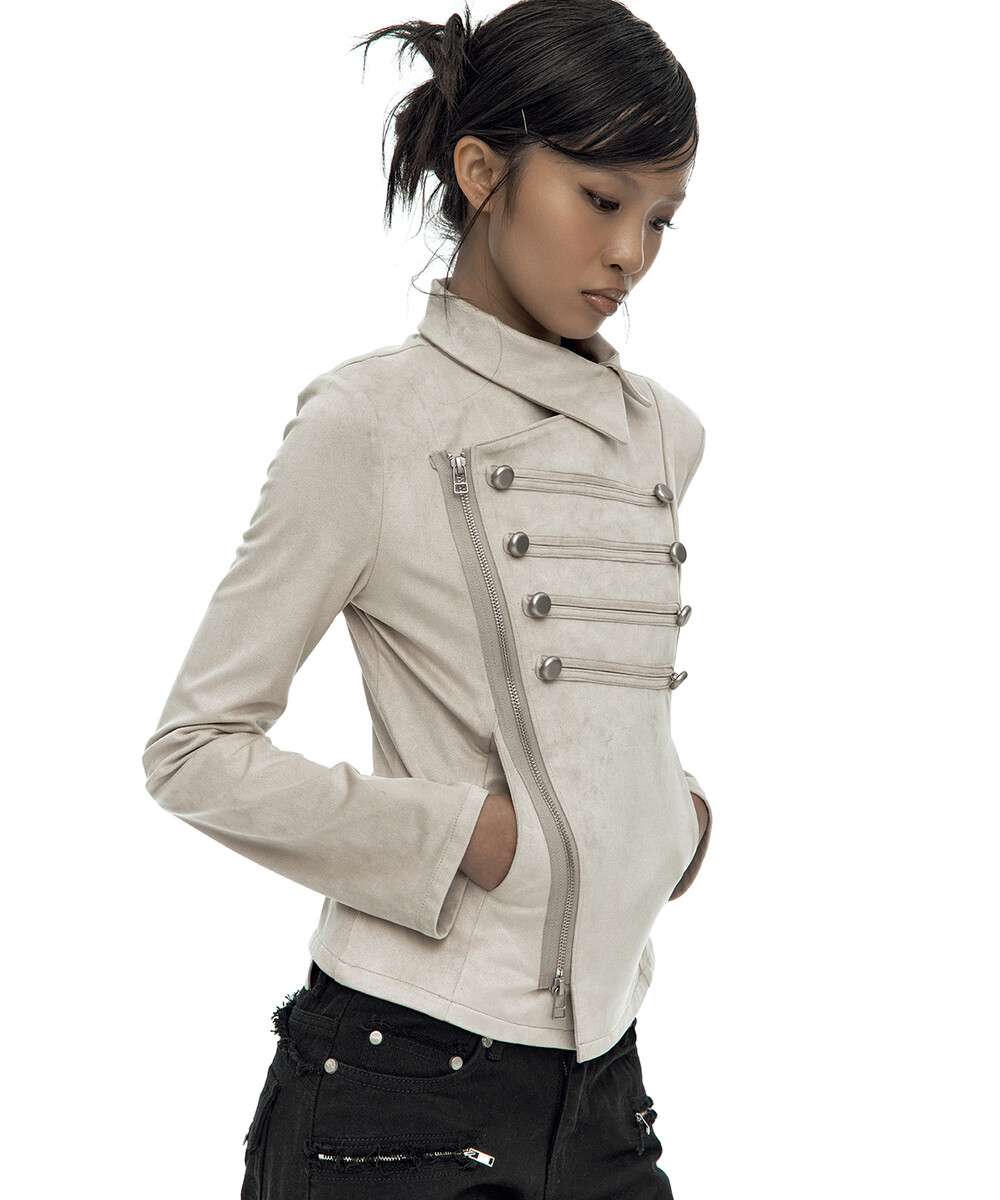 (4.2 Pre-Order) Asymmetric Zip Napoleon Jacket Light Gray