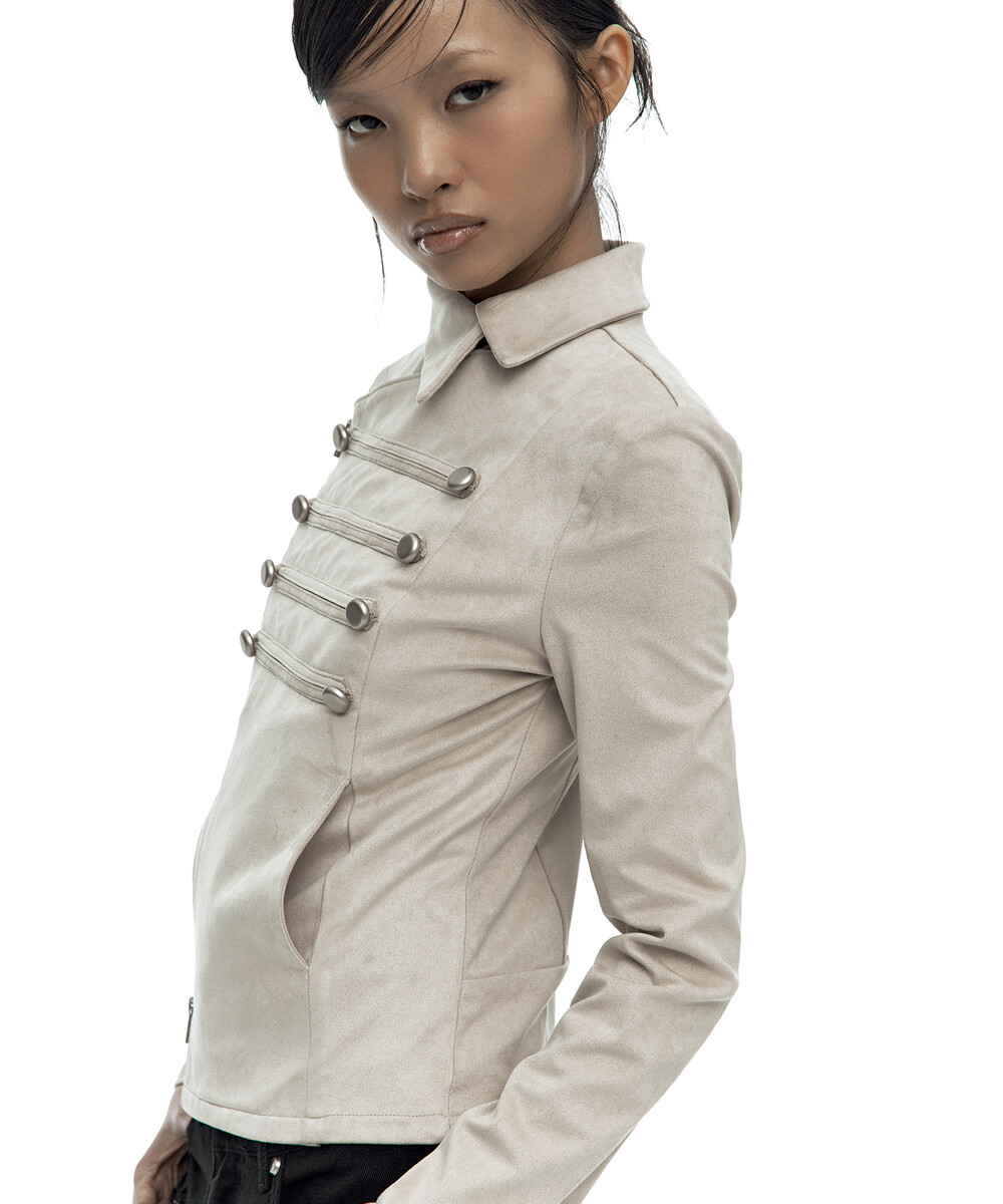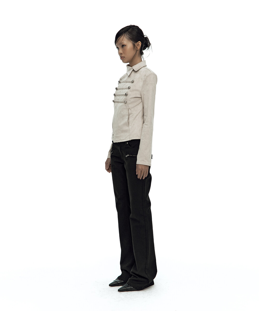 - 나폴레옹 버튼 디테일이 들어간 레자 스웨이드 자켓