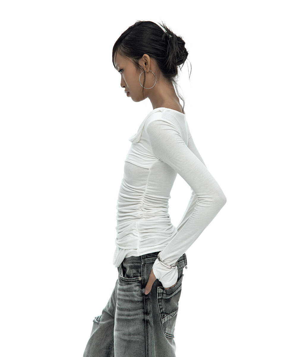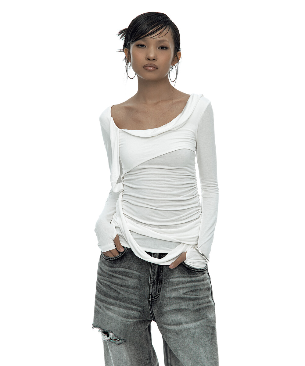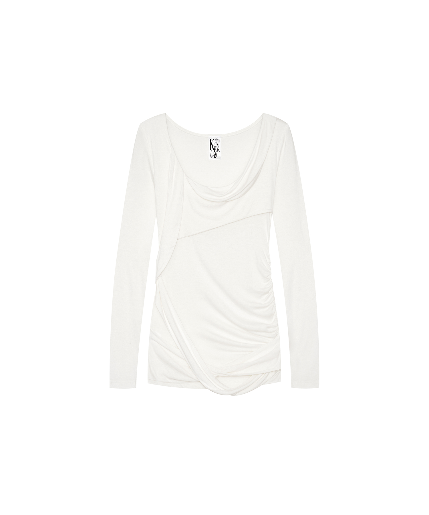 (3.25 Pre-Order) Drape Asymmetric Long Sleeve White