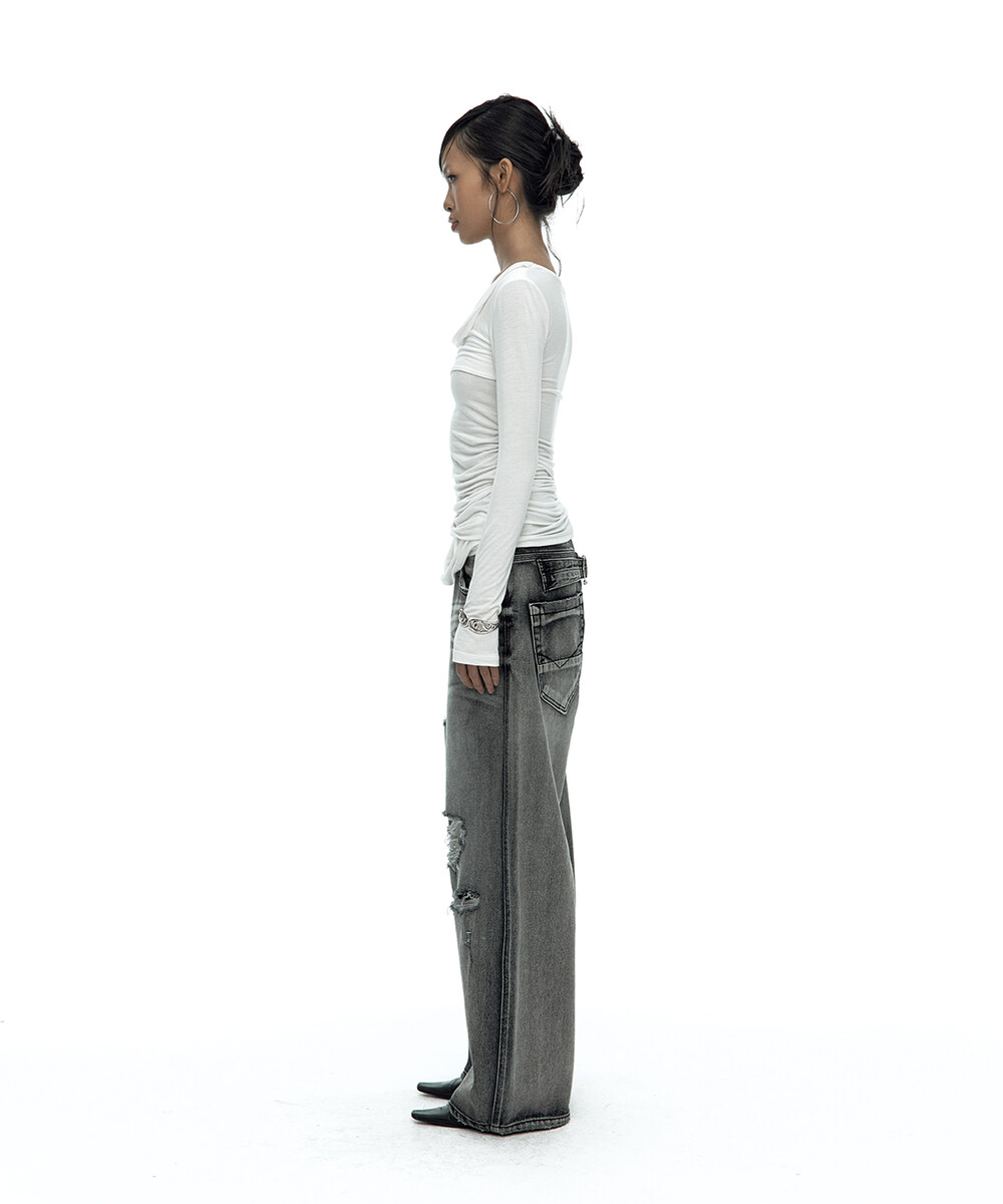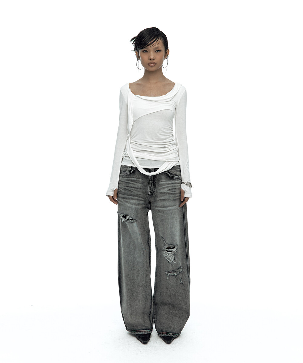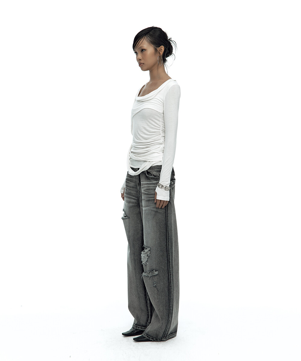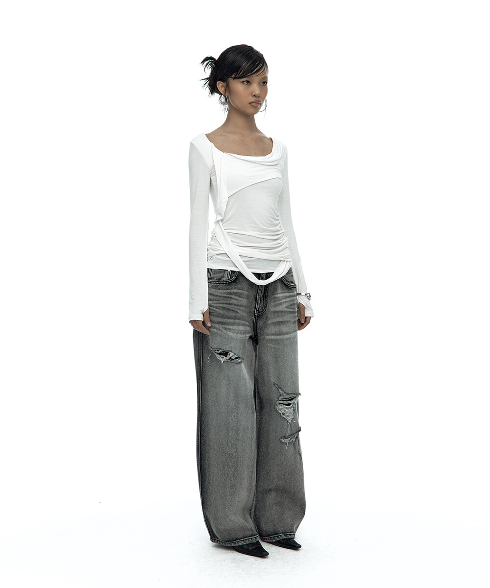 (3.25 Pre-Order) Drape Asymmetric Long Sleeve White