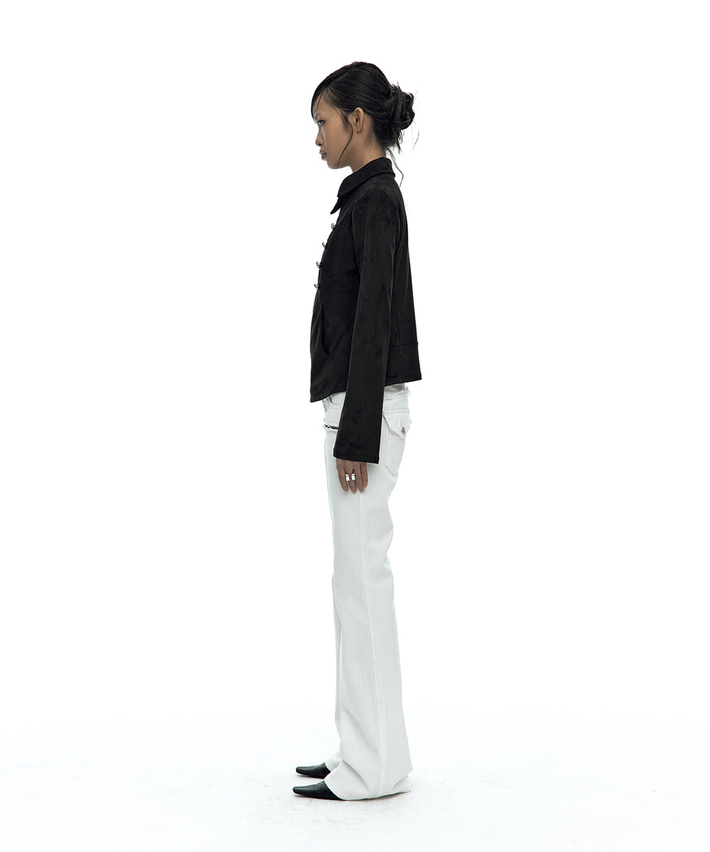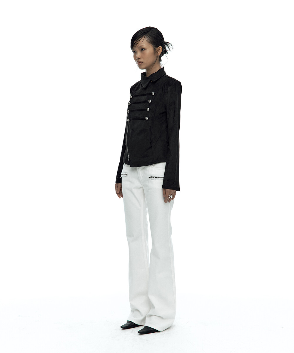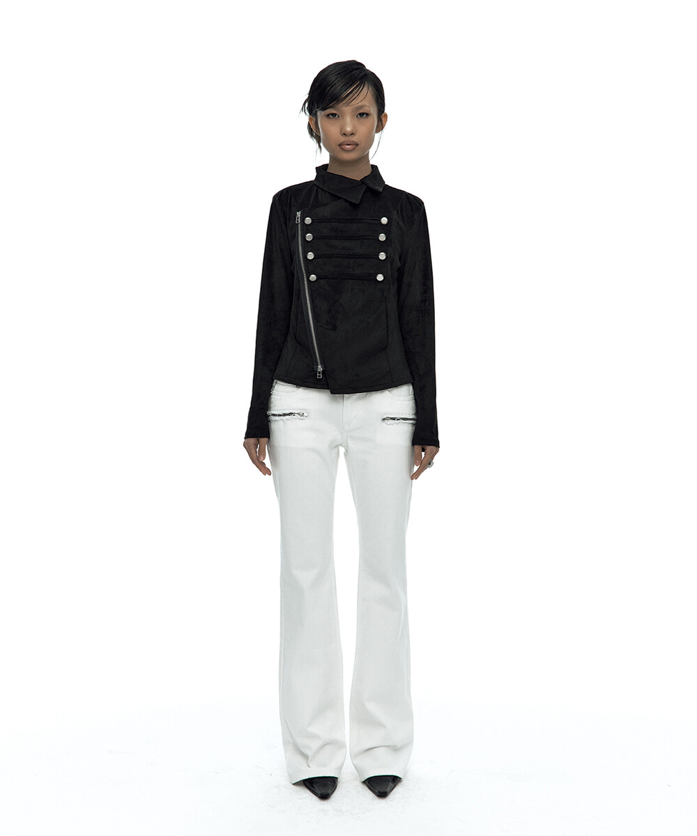 - 나폴레옹 버튼 디테일이 들어간 레자 스웨이드 자켓