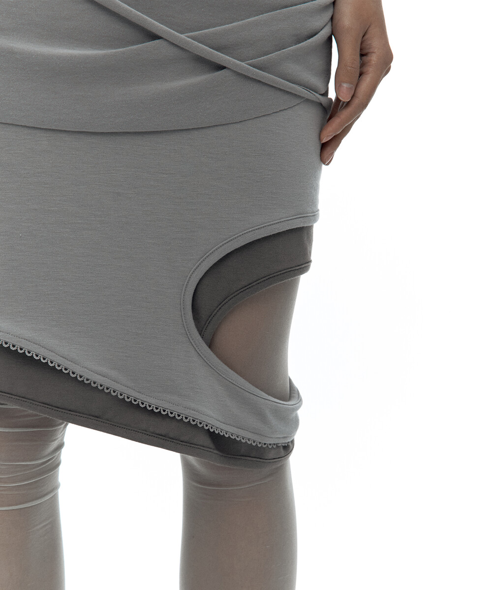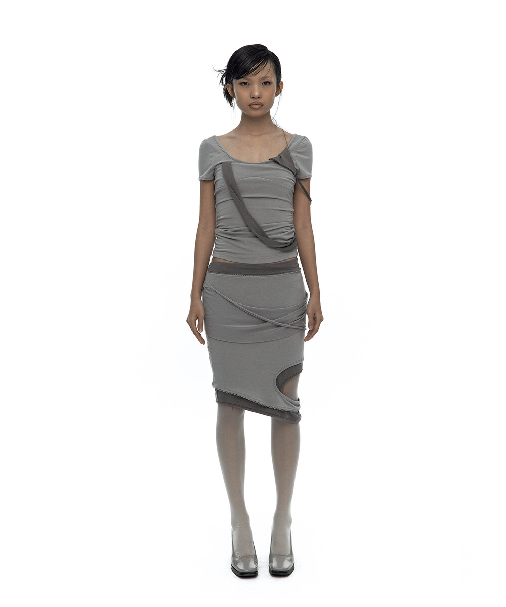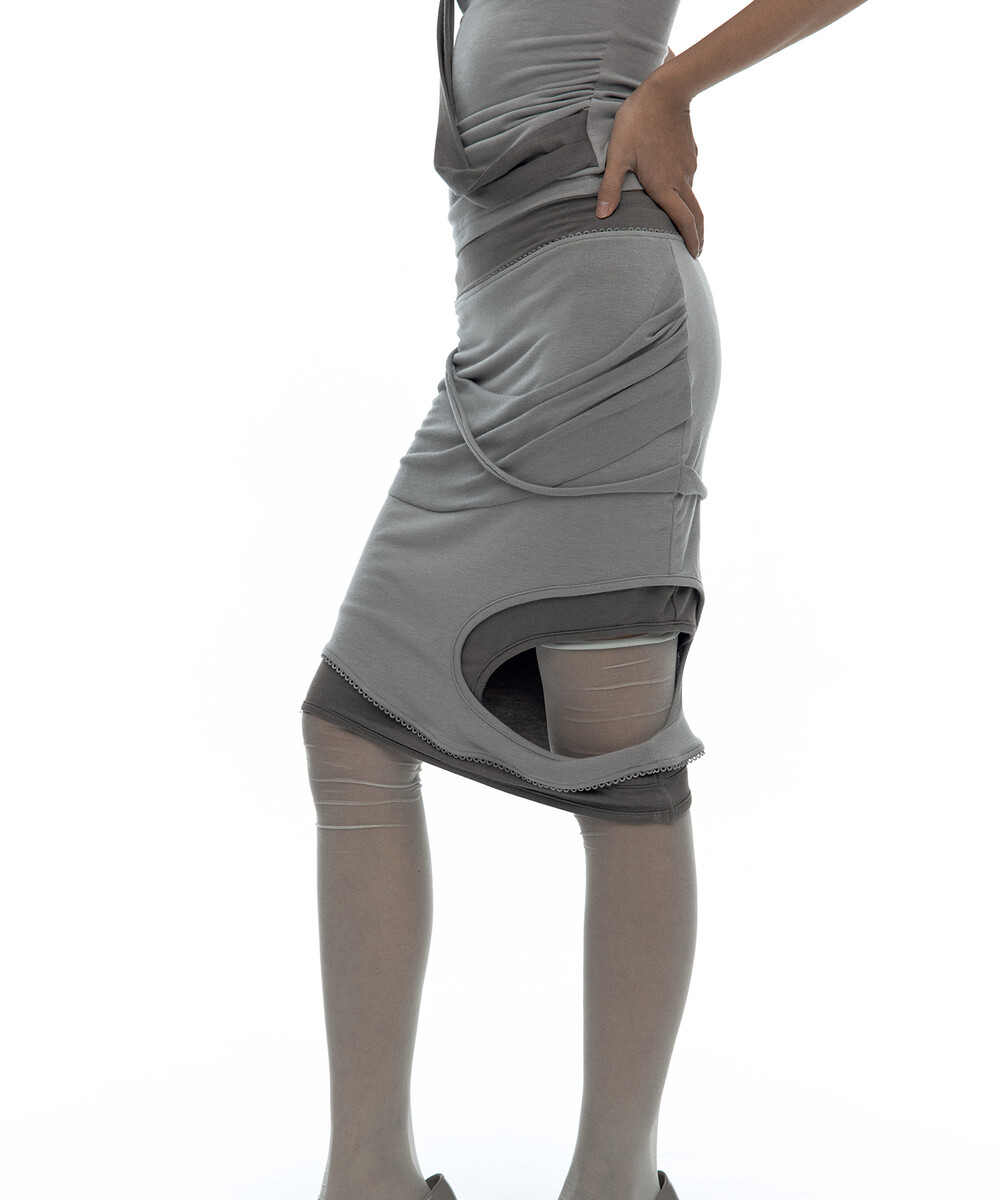(4.1 Pre-Order) Peek-a-boo Strap Skirt Warm Gray