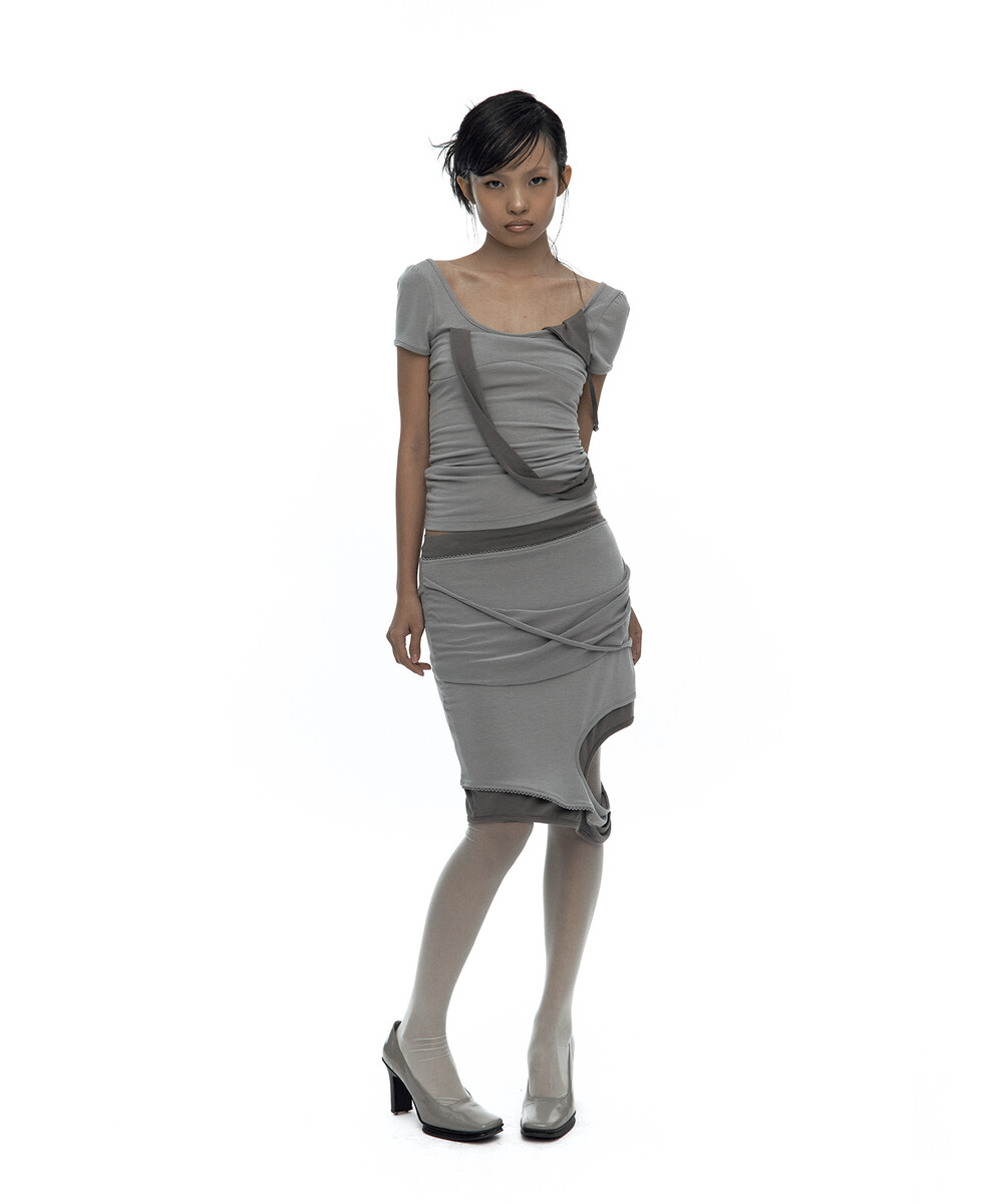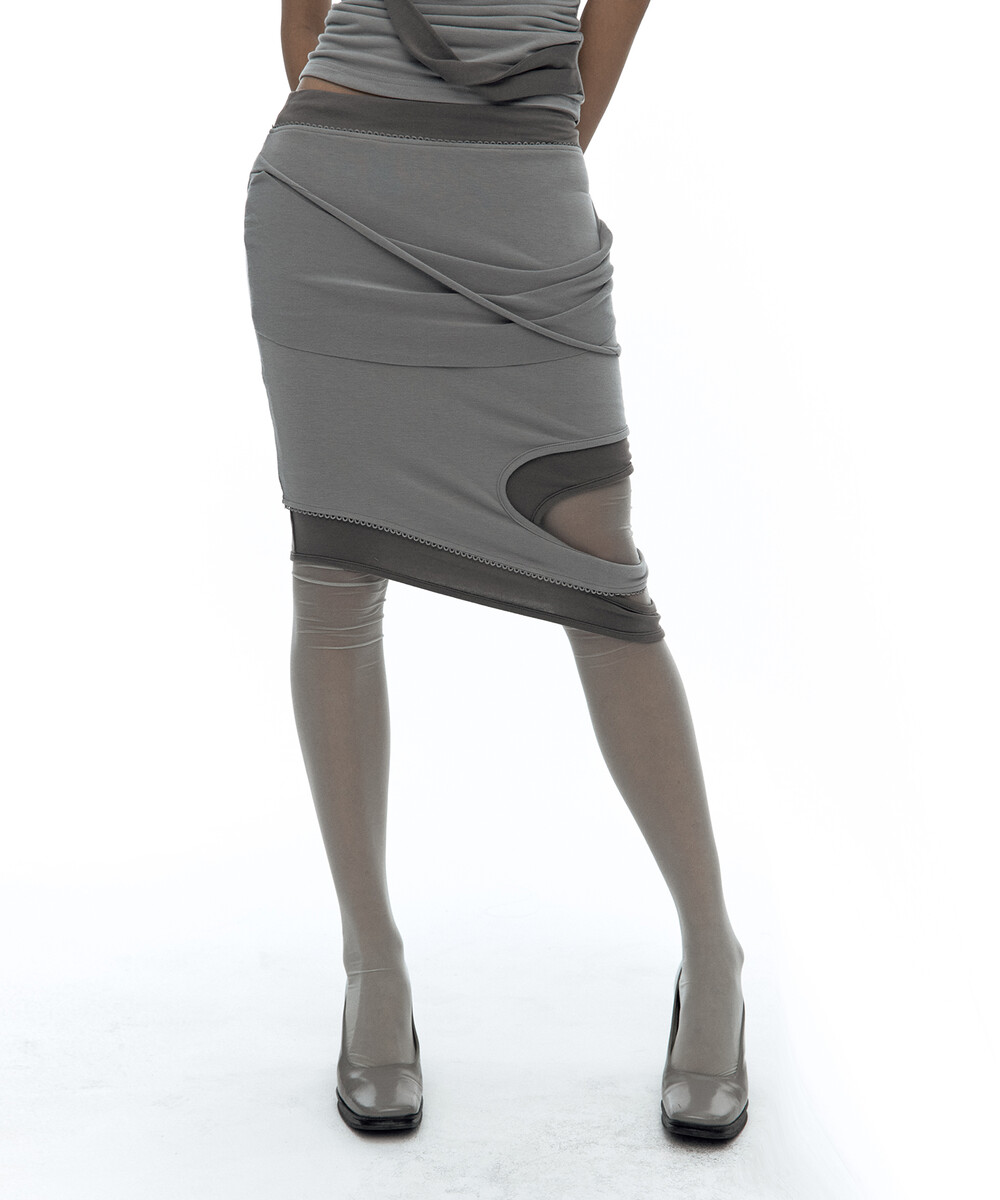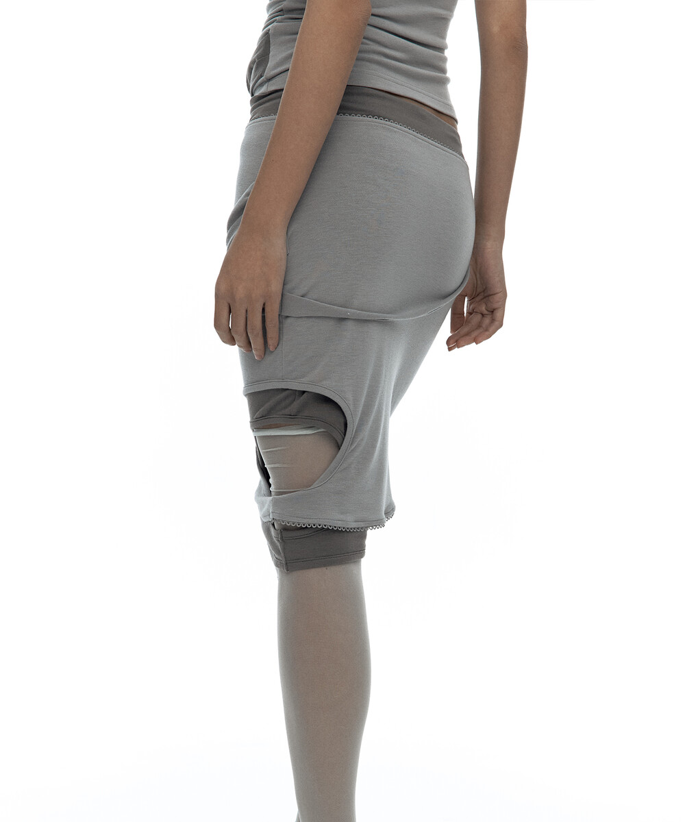 (4.1 Pre-Order) Peek-a-boo Strap Skirt Warm Gray