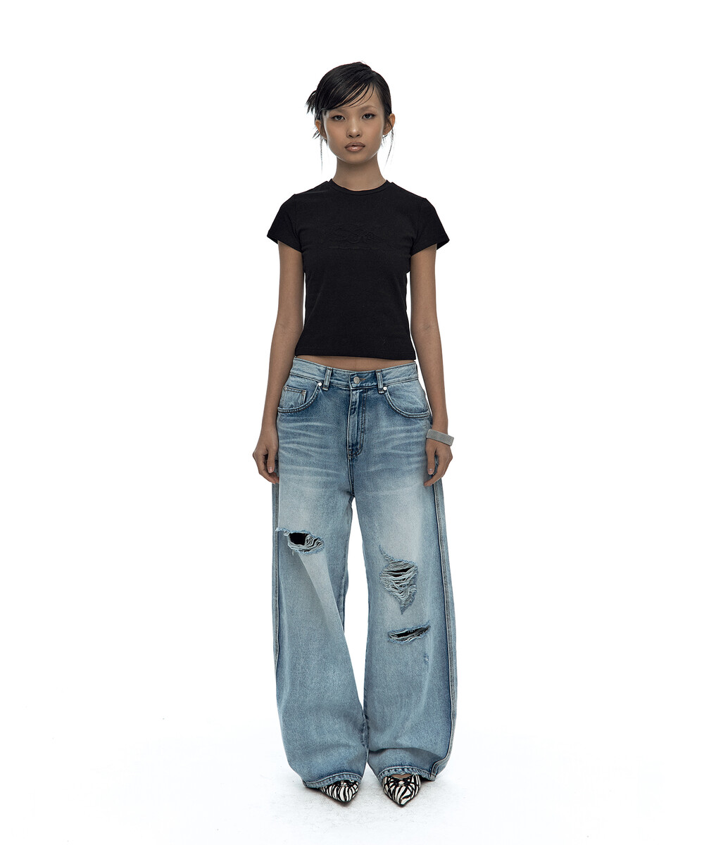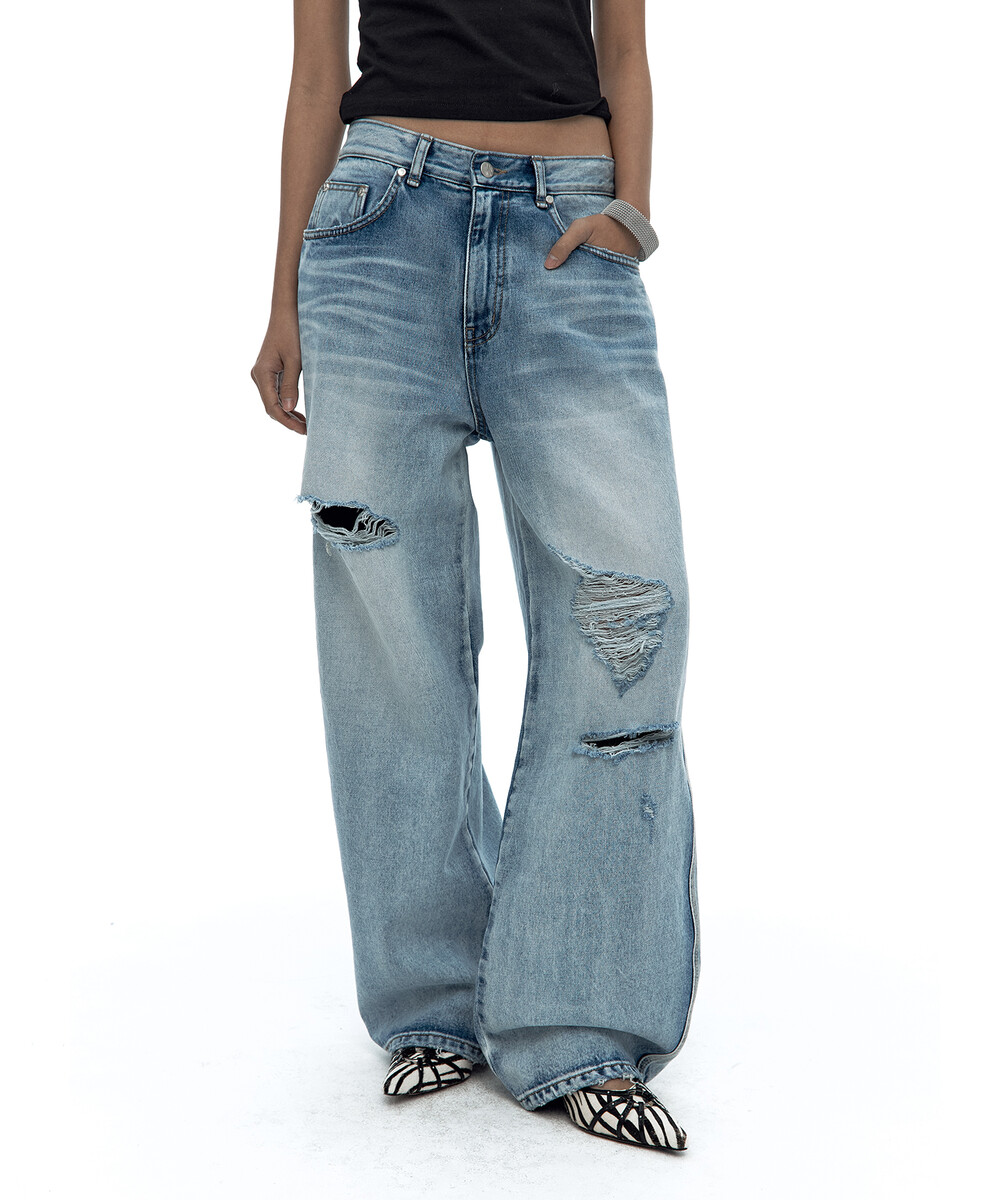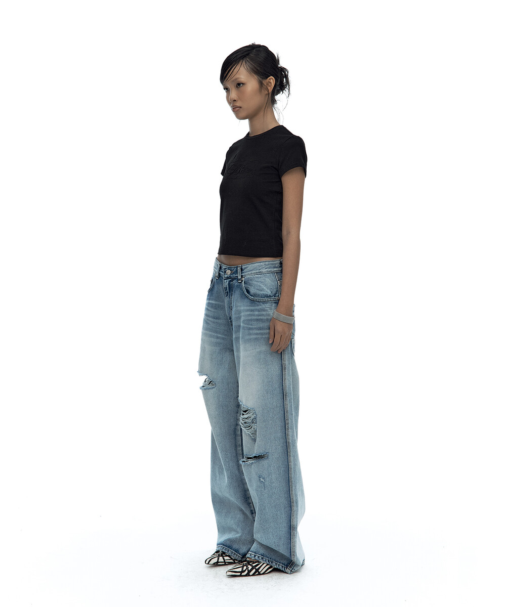 (3.31 Pre-Order) Milk Ripped Wide Jeans Light Blue