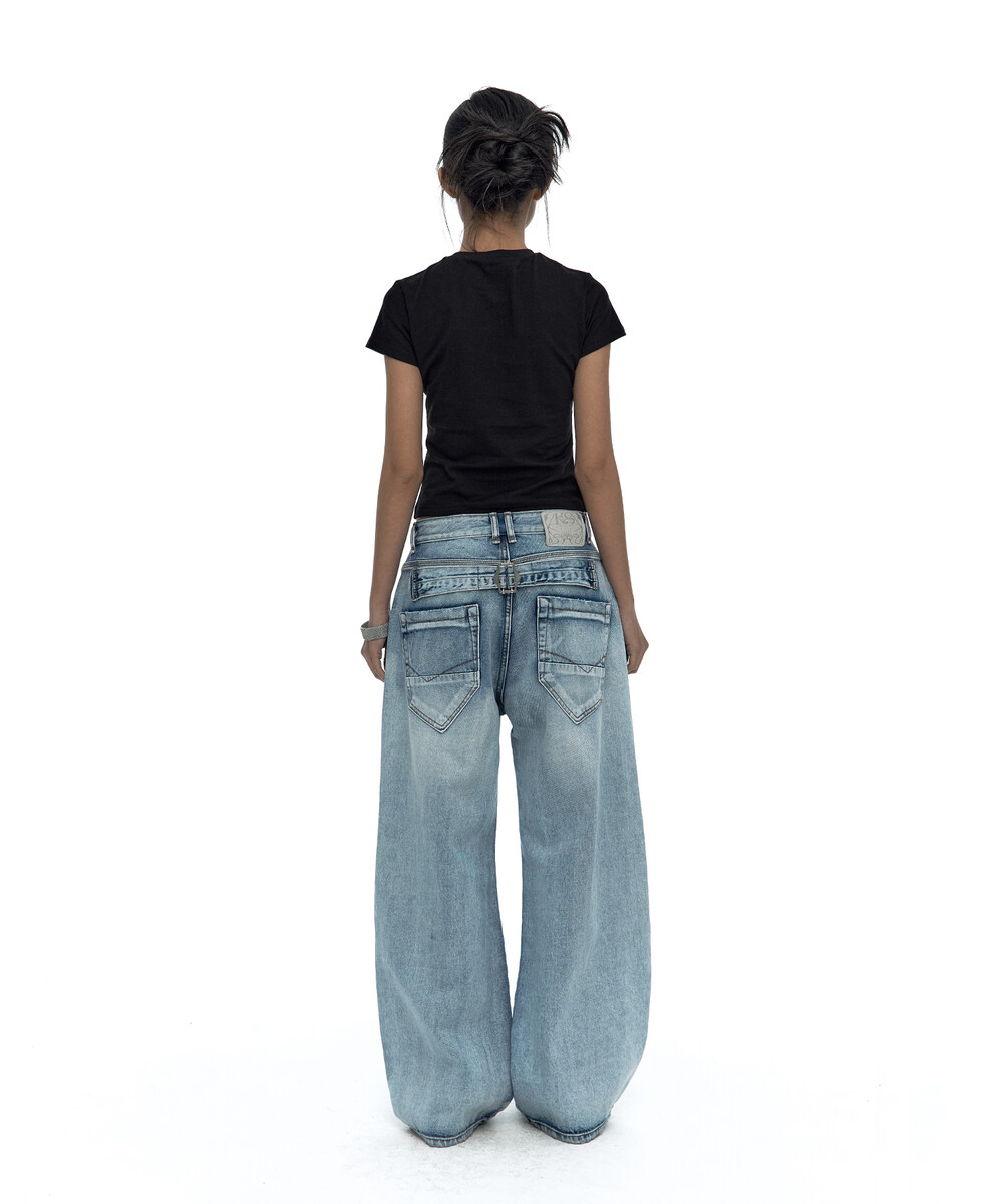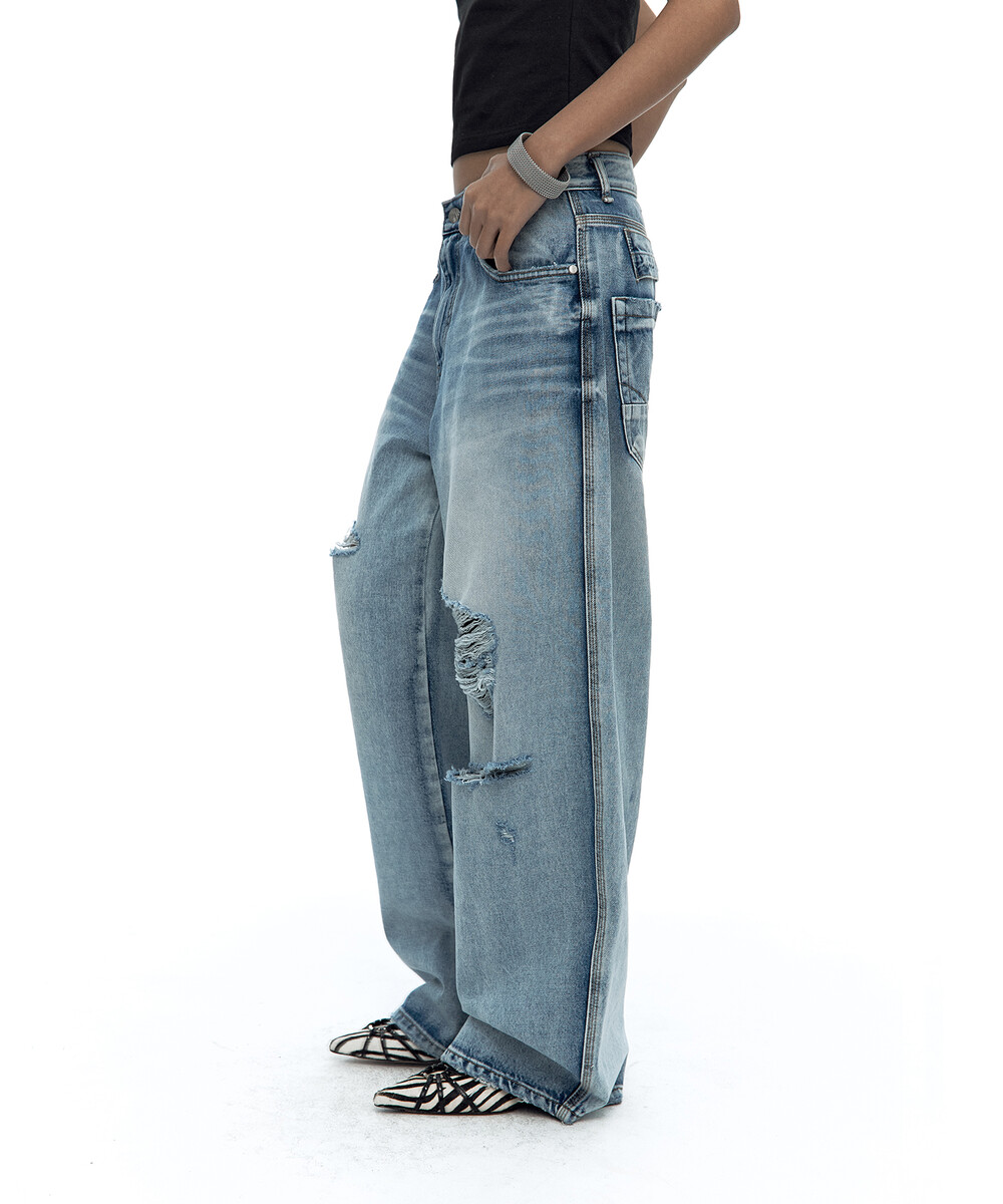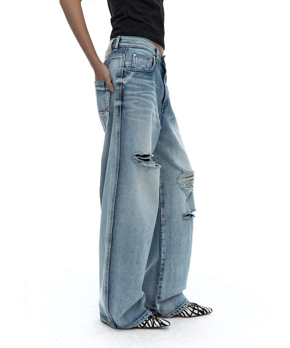 - 빈티지 워싱 와이드 데님 팬츠