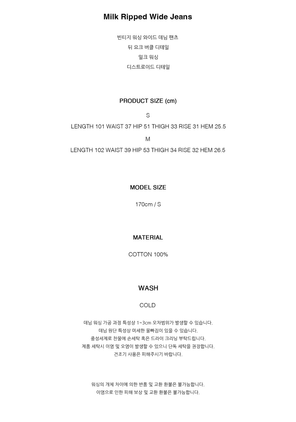 - 제품 제작 과정에서 발생할 수 있는 봉제 자국, 초크자국, 프린트의 작은 이염, 미세 잡사 등은 하자의 사유에 해당되지 않습니다.