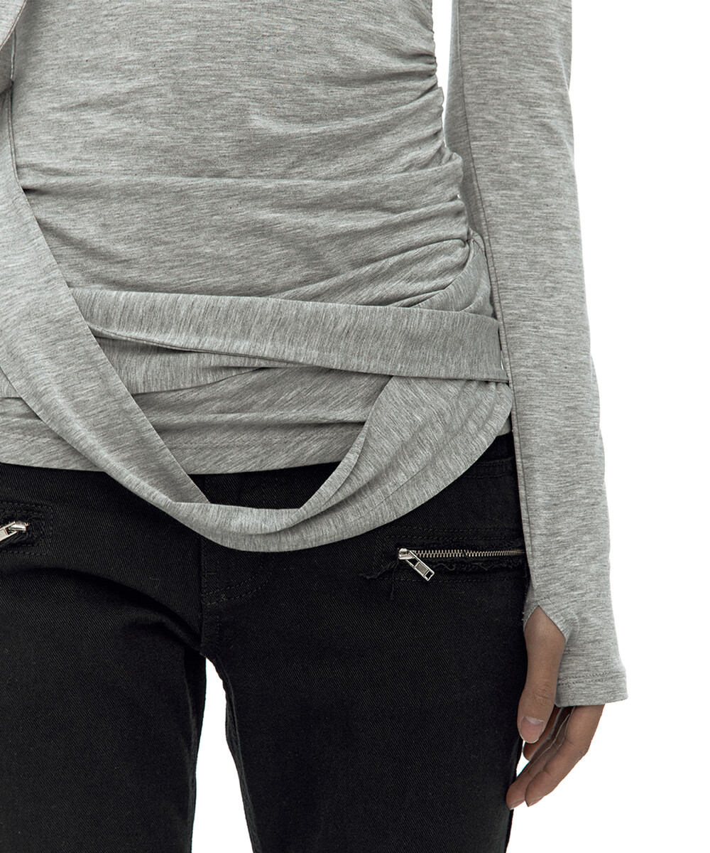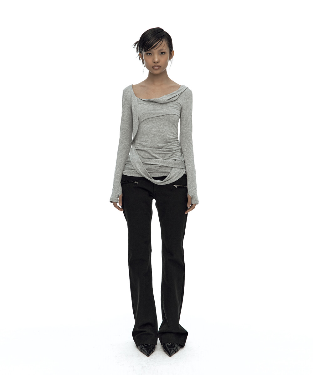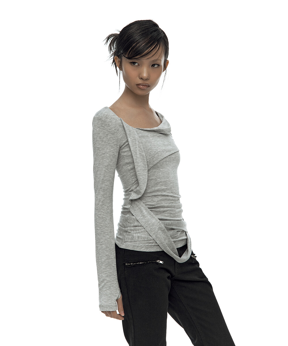 (3.25 Pre-Order) Drape Asymmetric Long Sleeve Gray