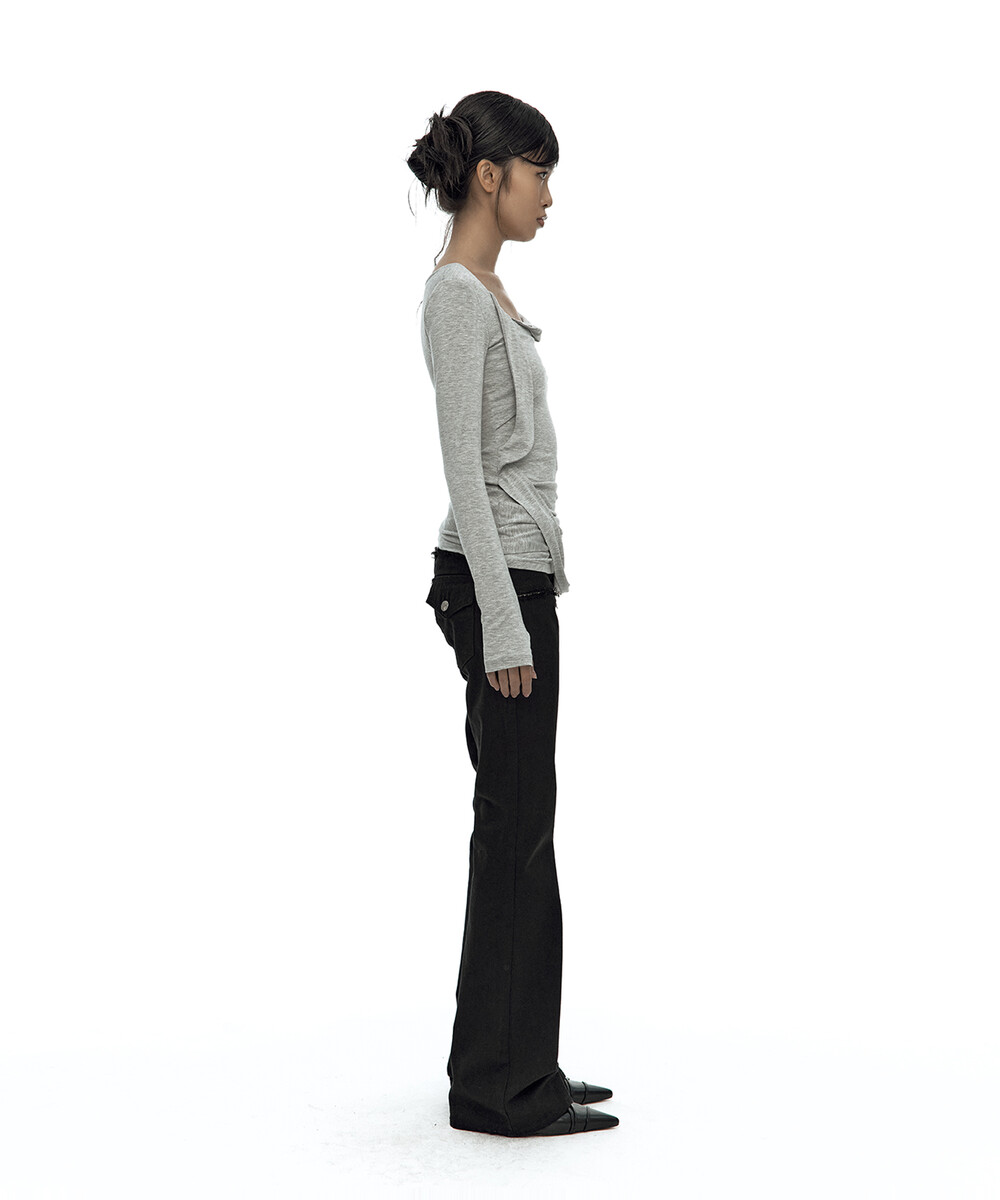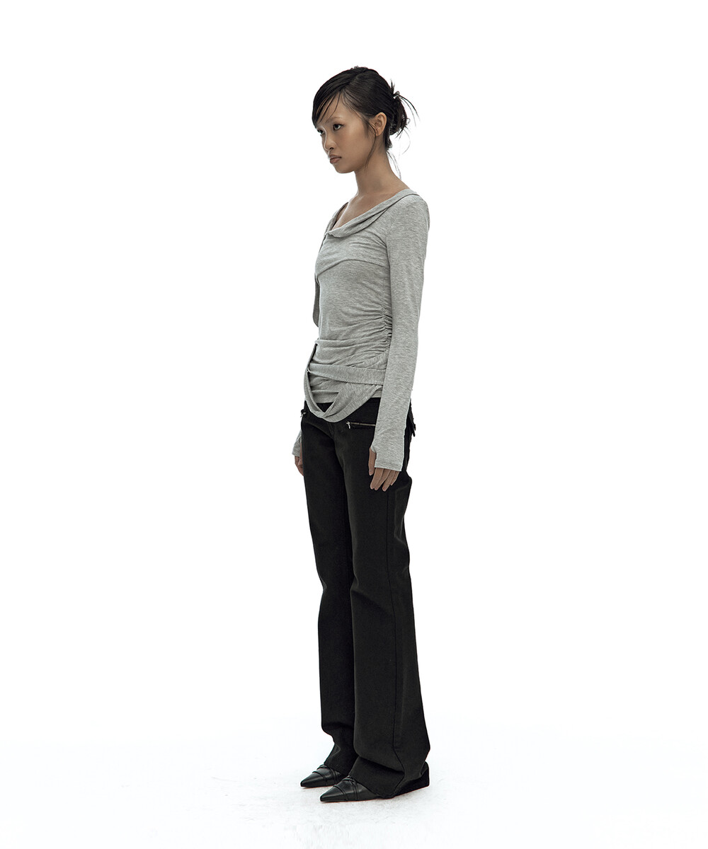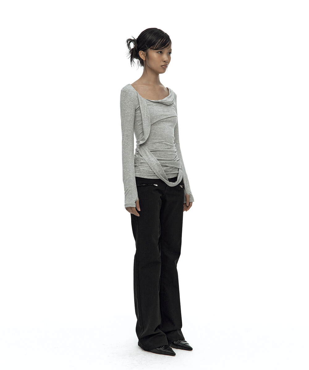 (3.25 Pre-Order) Drape Asymmetric Long Sleeve Gray