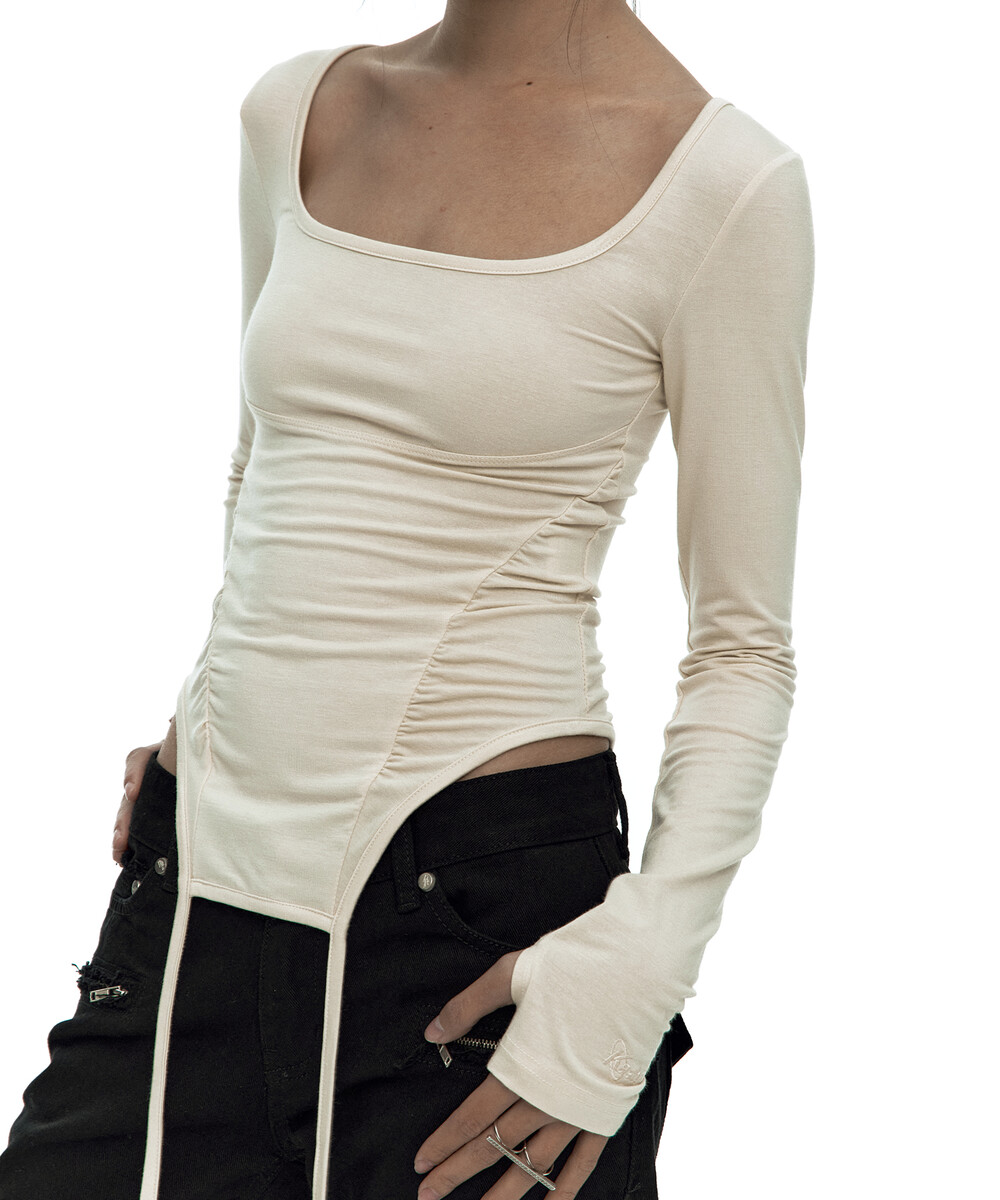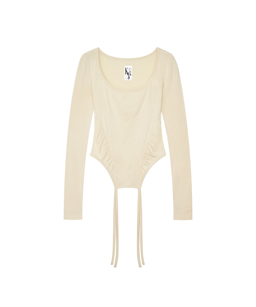 Slinky Shirring Bodysuit Beige