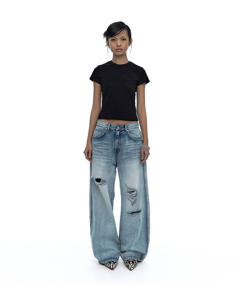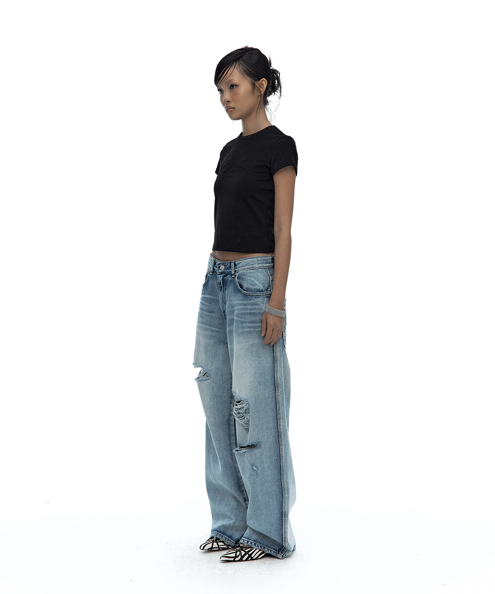 Embossed Baby Tee Black