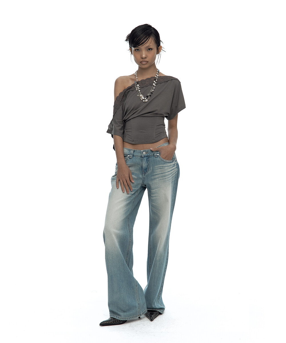 - 로우 라이즈 스트레이트 루즈 핏